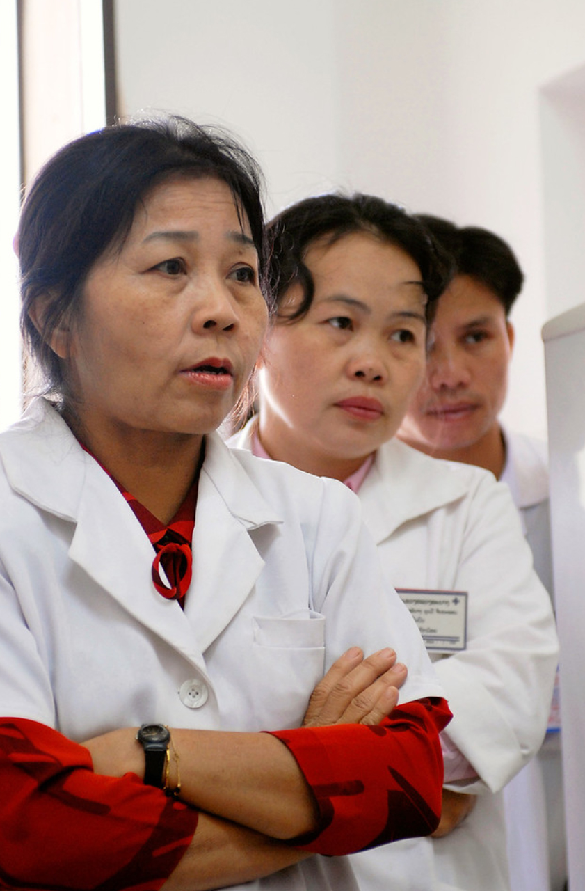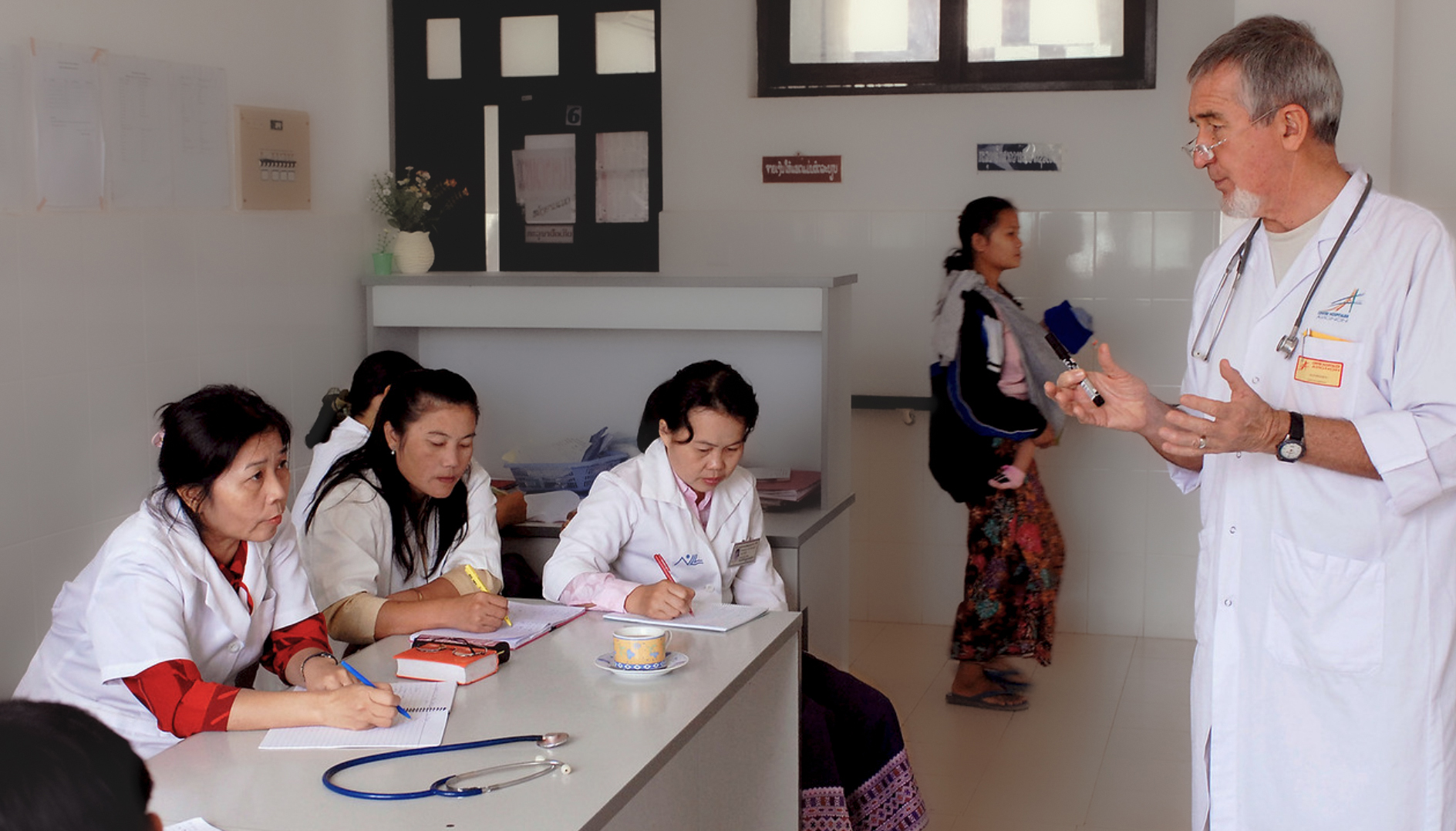 Des cours théoriques sont dispensés dans chaque spécialité sur des thèmes choisis en partenariat avec nos homologues Lao de façon à « coller » le plus possible avec la réalité du terrain. Des documents écrits ou informatiques ainsi que des revues et des livres sont laissés sur place au Centre de recherche diagnostique et thérapeutique des maladies cardio-vasculaires et de cardio-pédiatrie de notre association à Vientiane de façon à créer progressivement une source de documentation accessible à tous. Parallèlement, nos médecins et infirmières participent aux activités de consultation, de soins ou de bloc opératoire dans leurs services respectifs ce qui permet de dispenser une formation aussi bien théorique que pratique et d’apprécier au plus près les besoins afin que les cours ne soient pas isolés du contexte ou en opposition avec les habitudes locales.